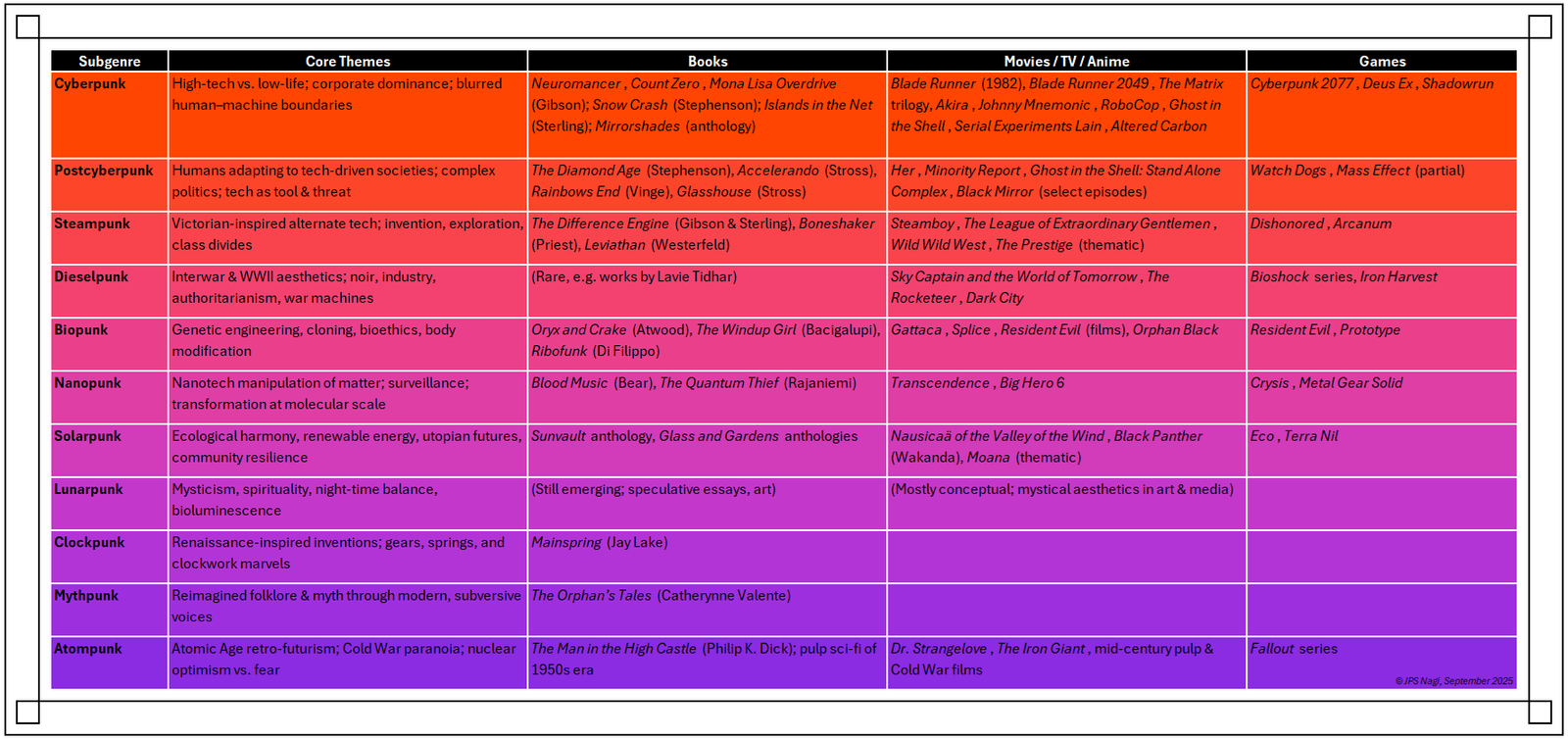 Click here to download your free Sci-Fi “Punk” Subgenre Reference Guide