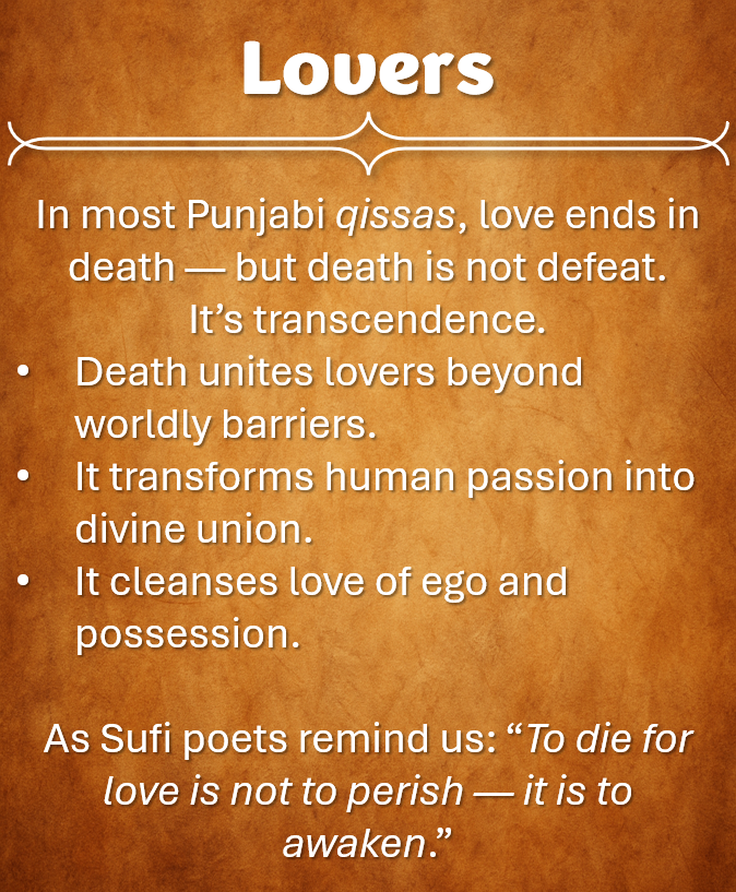 This is the quiet secret of the qissa: love is never defeated. It only sheds one form to take another, from flesh into song, from memory into myth, from story into philosophy. And as long as these tales are sung, love continues to live, untamed and undefeated.