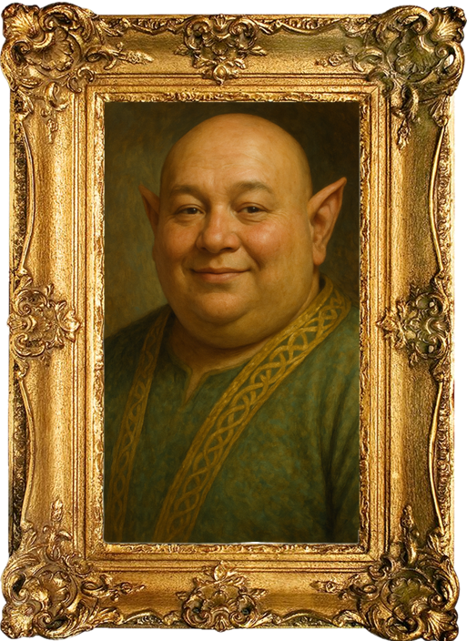 He was the first to take shape. Not the slender, ethereal elf you might expect, but heavy-set, bald, and round-faced—an elf who looked like he appreciated meals as much as manuscripts. Pherelar was built from curiosity, equal parts scholar and wanderer, a man who had walked deserts, sailed seas, and even thumbed through frozen libraries of the north. He was a traveler in every sense—always hungry to learn, but also hungry in a more literal way. Food was never far from his thoughts, and perhaps that was part of his charm. He is the story’s beating pulse, playful and ever-moving, because motion was survival. And beneath that humor and hunger was something deeper: a refusal to let the world reduce him to stillness.