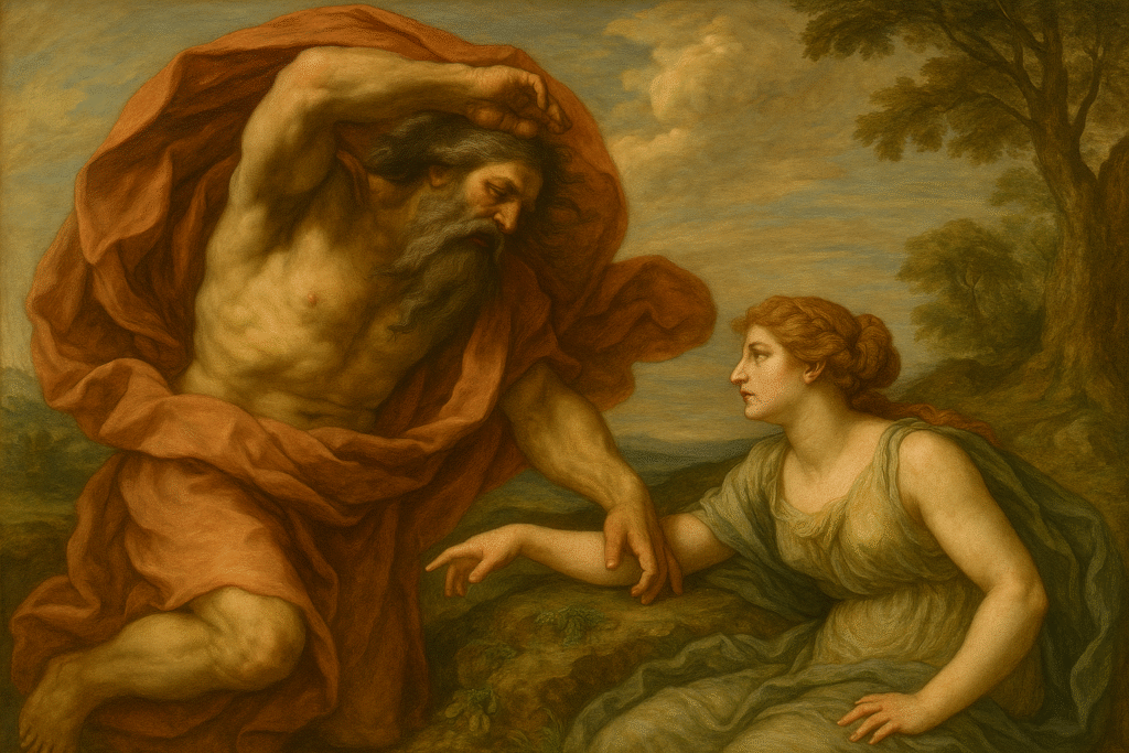 Long before Zeus battled Titans or heroes roamed the earth, the Greek cosmos began with something far simpler and far more immense: Gaia, the Earth, and Uranus, the Sky. In the earliest myths, Uranus wasn’t just the sky – he was the sky itself, stretched endlessly over Gaia like a celestial dome. Their union produced the first generation of divine beings: the Titans, the Cyclopes, and the fearsome Hundred-Handers.